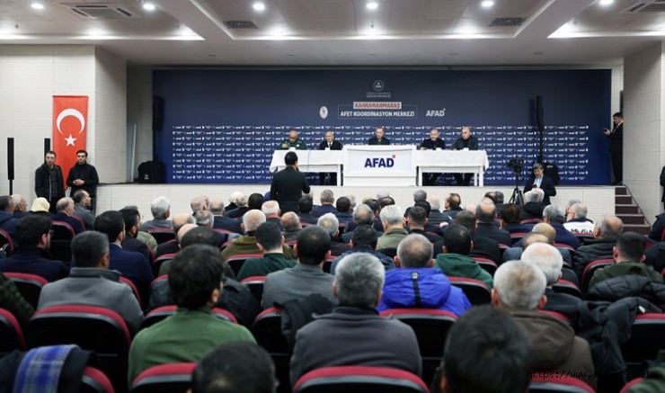 Cumhurbaşkanı Erdoğan, millete ve Kahramanmaraşlılara “geçmiş olsun” dileklerini ileterek, şunları ifade etti: “Dünyada eşi benzeri görülmemiş deprem felaketlerinin ardından Kahramanmaraş’taki arama kurtarma, yardım ve destek faaliyetlerinde 41 binden fazla görevlimiz, 3 bine yakın iş makinemiz mevcut. Barınma için kurulan çadırların sayısı 40 bini, konteynerlerin sayısı 3 bini, hayatını buralarda sürdüren insanlarımızın sayısı 300 bini buldu. Kamuya ait spor salonlarına, camilere, yurtlara, okullara ve diğer geçici barınma merkezlerine yerleştirilenlerin sayısı 58 bini geçti. Şehirde tespiti tamamlanan yerlerde 25 bin binadaki 91 bin bağımsız bölümün ‘yıkık’, ‘yıkılacak’ veya ‘ağır hasarlı’ olduğu belirlendi. Bir başka ifadeyle Kahramanmaraş’ın yaklaşık 3’te 1’i oturulamaz hâle gelmiştir. Dolayısıyla az hasarlı, orta hasarlı, ağır hasarlı demeden bizler, bütün bu inşaatları sıfırdan ele almak suretiyle yeniden inşa ve ihya edecek, Kahramanmaraş’ı Kahramanmaraş olarak bütün mağdur, mazlum depremzede kardeşlerimize inşallah teslim edeceğiz.”