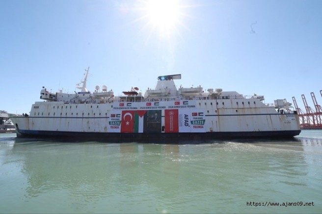 Afet ve Acil Durum Yönetimi Başkanlığı (AFAD) koordinasyonunda, 17 sivil toplum kuruluşunun destekleriyle hazırlanan 900 tonluk insani yardım malzemesini taşıyan gemi için 14 Ekim Salı günü Mersin Uluslararası Limanı'nda uğurlama töreni düzenlendi.