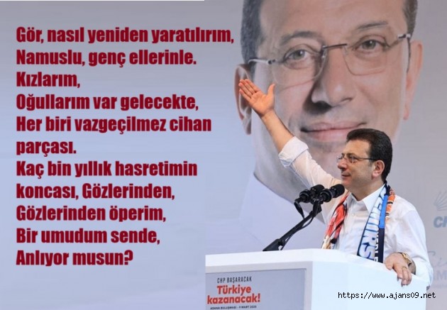 - "Ama yolun sonu göründü. Korku kaybedecek, cesaret kazanacak. Kötülük kaybedecek, iyilik kazanacak. Bir kişi kaybedecek, bir büyük millet kazanacak. Onlar için yol bitti. Biz ise yolun başındayız. Millet sırtını döndü, onların umudu kalmadı. Artık umut sizsiniz. Umut sizsiniz!”