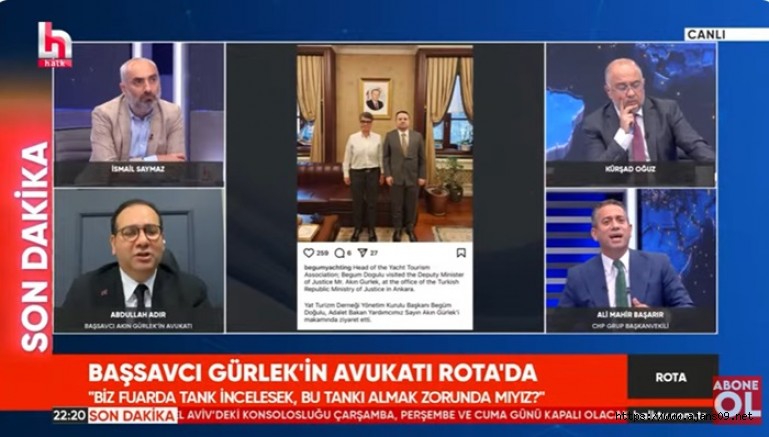 İstanbul Cumhuriyet Başsavcısı Akın Gürlek'in avukatı Abdullah Adır, CHP Grup Başkanvekili Ali Mahir Başarır ile Halk TV'de Rota programına katıldı.