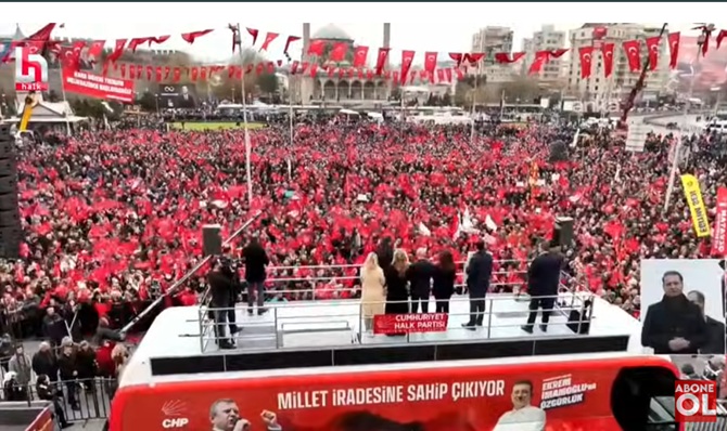 Bakın, Ekrem İmamoğlu bugün neredeyse 9 aydır hapiste. Ekrem Başkan'ın suçu, Ekrem Başkan'ın suçu, tek suçu Recep Tayyip Erdoğan'ı yenmektir. Onu Beylikdüzü'nde yendiği için, 31 Mart 2023'te yendiği için, mazbatası iptal edilince 24 Haziran 2023'te bir daha yendiği için 5 yıl boyunca bütün engellemelere rağmen bu sefer 1.150.000 farkla yendiği için Tayyip Erdoğan'ın hedefindedir. 19 Mart tarihi AK Parti'nin kara düzeninin artık demokrasi treninden indiği, artık kendi seçilip geldiğinde milli irade diye baş tacı ettiği ama şimdi küçük gördüğü milli iradeye karşı giriştiği bir darbe girişimidir. Bugün açıkça söyleyelim Kayserililer kim istiyorsa onları o yönetiyor, o yönetmelidir. Kayseri'nin Büyükşehir Belediye Başkanı'na da Melikgazi ve diğer metropol belediye başkanlarına da oyu Kayserili vermiştir. Bu ilçeyi, bu büyük şehri yönetmek onların hakkıdır.