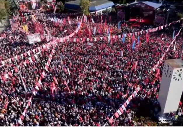 İşte hâl böyle olunca, biraz önce sizi selamlayan, alkışlayan başkanlarımız İstanbul'da Ekrem Başkan, Ankara'da Mansur Başkan hep birlikte çalışarak, örnek hizmetlerle milletin gönlüne girince, yapılan anketlerde seçimin çok ilerisinde sonuçlar alınca karşımızdakiler bizim 47 yıl gösterdiğimiz sabrı, metaneti, demokrasiye saygıyı 47 ay göstereceklerdi. O günden genel seçimlerin takviminin başlamasına 47 ay vardı. Değil 47 ay, 47 gün hazmedemediler. 47 gün yenilgiyi kabullenemediler. Daha ilk yenilgilerinde demokrasi direğinden indiler ve dünyadaki diğer otoriterleri örnek alan değil, aşan, onların cesaret etmediği işlere kalkışan bir saldırıya giriştiler. Önce seçimli otoriterlik kuranlar, şimdi seçimsiz bir diktatörlüğe geçmenin hevesi içindeler. Atatürk'ten miras cumhuriyete, demokrasiye, sandığa saldırıyorlar. Çok partili rejime saldırıyorlar. Bu iktidar demokrasi istemiyor. Biliyorlar ki demokrasi olsa sandıktan çıkamayacaklar. Biliyorlar ki adalet olsa kendi suçlarını aklayamayacaklar. Biliyorlar ki barış olsa bu milleti kutuplaştıramayacaklar. Ama and olsun ki adaleti de, demokrasiyi de, barışı da biz getireceğiz. Bu meydanlar getirecek, bu eylemler getirecek, bu direniş getirecek.
