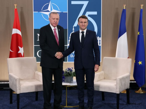 Cumhurbaşkanı Erdoğan, NATO Devlet ve Hükümet Başkanları Zirvesi kapsamında, Fransa Cumhurbaşkanı Emmanuel Macron ile bir araya geldi.