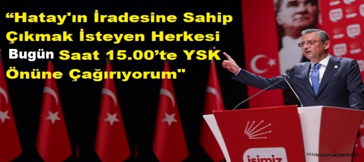 Özel’in bu akşam X hesabından yaptığı açıklamada, "Hatay'ın sandıktaki iradesine günlerdir masa başı oyunlarla müdahale edilmektedir. Başvurularımız sonuçlanmadan ve YSK kararını açıklamadan siyasi baskılarla haksızca ve hukuksuzca mazbata verilmiştir. Bizler yarın saat 15.00’te YSK önünde olacağız. Hatay'ın iradesine sahip çıkmak isteyen herkesi barışçıl ve anayasal hak arayışı için YSK önüne çağırıyorum" ifadelerini kullandı.