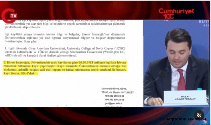 "18 Kasım 1991 tarihli YÖK yönetim kurulu kararına göre Girne Amerikan Üniersitesi YÖK tarafından tanınıyor ama Girne'deki kampüs tanınmıyor. İşin bam teli burası. Bir yatay geçiş işleminin hukuka uygun olup olmadığı, geçişin yapıldığı dönemdeki yasal mevzuat ile belirlenir. Sayın İmamığlu'nun yatay geçiş başvurusu Ağustos 1990'da. Yani YÖK'ün istismar edilen raporundan 1.5 sene önce. O dönem için tanınırlık ve denklik şartı getirilmiş değildir. Mevzuatta da buna dair bir düzenleme bulunmamaktadır. Bu nedenle tsanınırluk şartı aranması hukuken mümkün değildir."
