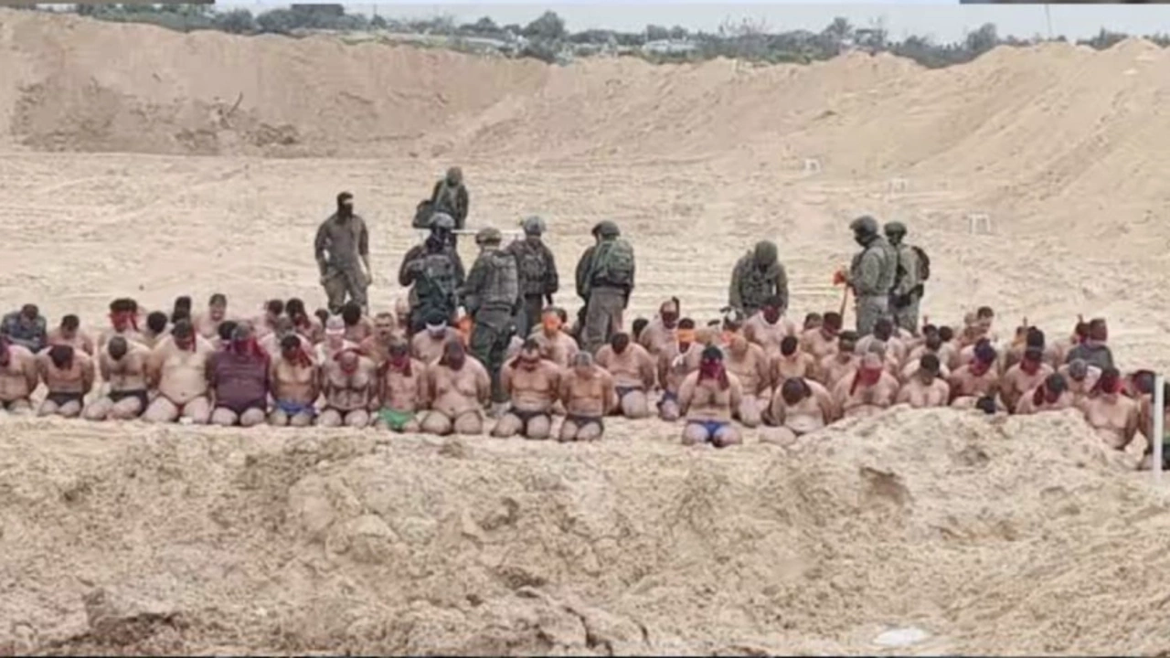 Gazze'de çekilen ve perşembe günü sosyal medyada yayılan fotoğraflarda İsrailli askerlerin, bir grup Filistinli erkeği iç çamaşırlarına kadar soyulmuş, diz çöktürülmüş ve gözleri bağlanmış halde tutulduğu görüldü.