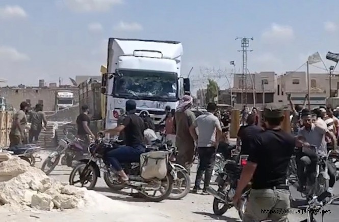 Suriye'nin kuzeyindeki Azez'e, Türkiye'den sebze ve meyve getiren tırlara provokatör bir grup saldırdı. Tırlara taşlayarak zarar veren grup, daha sonra hurda haline gelen araçları ateşe verdi. Provokatör grubun tekbir getirmesi de dikkatlerden kaçmadı