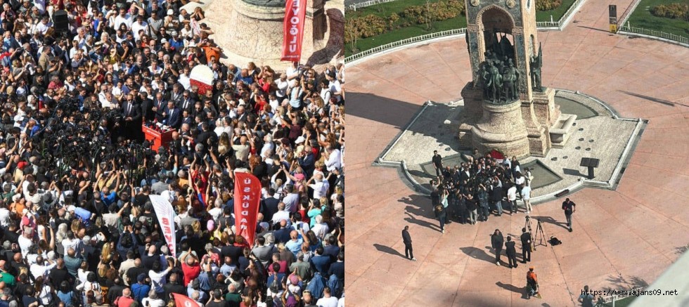 CHP Genel Başkanı Özgür Özel ise saat 14.00'te partisinin 102. kuruluş yıl dönemi dolayısıyla Taksim Cumhuriyet Anıtı'na geldi.