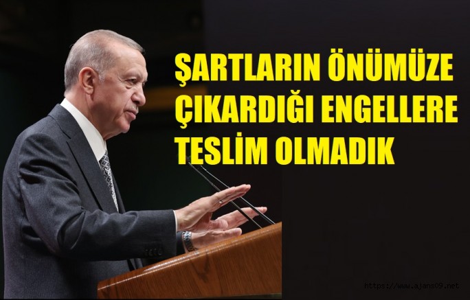 Ve değerli kardeşlerim; 20 yılda asırlık eksiklerini tamamladığımız sağlam bir altyapıya, bölgesel ve küresel düzeyde pek çok avantaja sahibiz. Böyle bir Türkiye sadece depremin yol açtığı sıkıntıları kısa sürede aşmakla kalmayacaktır. Milletçe yaşadığımız bu büyük felaketi çıkardığımız dersler ve geleceğimize olan güvenimizin verdiği motivasyonla daha büyük bir atılımın vesilesi hâline getirebiliriz. Şehirlerimizi yeniden kurarken sadece beton ve demir yığınlarından oluşan binalar yapmayacak, maziden atiye uzatacağımız köprülerle onları ruh verecek, anlam katacak kimlikler de kazandıracağız.