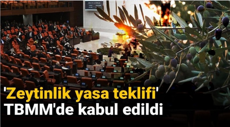 Türkiye Büyük Millet Meclisi'nde (TBMM), kamuoyunda büyük tepkilere yol açan ve "Talan yasası" olarak anılan düzenlemeye onay çıktı. Yeni yasa, zeytinlik alanlarda madencilik ve enerji şirketlerine açıyor. Kanun, 199 red oyuna karşı 255 milletvekilinin oyu ile kabul edildi