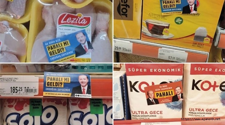 İktidarın ekonomik kriz karşısında ses yükselten yurttaşı baskılama çabalarına yenisi eklendi. AKP’nin ekonomi politikası nedeniyle önlenemez hale gelen enflasyonun altında ezilen yurttaşlar, marketlerdeki ürünlerin üzerine, “Bu ürün size pahalı mı geldi? Erdoğan sayesinde” çıkartmaları yapıştırmaya başladı. Çıkartmaları hazırlayan görsel iletişim tasarımcısı Mahir Akkoyun, dün sabah saatlerinde gözaltına alındı. Akkoyun daha sonra serbest kaldı.