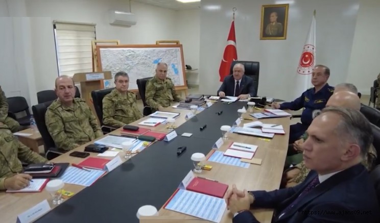Suriye sınır bölgesindeki 6’ncı Kolordu ve Müşterek Özel Görev Komutanlığı Esas Komuta Yerinde inceleme ve denetlemelerde bulunan Bakan Yaşar Güler, yurt içindeki ve sınır ötesindeki birlik komutanlarının katılımıyla gerçekleşen video telekonferans toplantısında şunları söyledi: