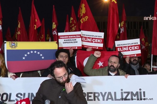 ABD'nin Ankara Büyükelçiliği önünde bir araya gelen TKP'liler "Kahrolsun ABD emperyalizmi" ve "Venezuela'nın yanındayız" sloganları attı. TKP Ankara İl Başkanı Ali Ufuk Arikan, yaptığı açıklamada “Bugün ABD adlı bir haydut çetesinin Ankara’da bulunan binasının önünde bir kez daha büyük bir öfkeyle buluştuk. Bugün bu haydut çetesi, bir ülkenin halkına ve iradesine kendi istedikleri gibi, canlarının istediği gibi saldırabileceği kanısıyla alçakça bir saldırıya imza attı. Bugün yeni bir safhaya geçen bir savaşla karşı karşıyayız. Savaşın bir cephesinde arkamızdakiler duruyor: Haydut cephesi. Savaşın diğer cephesinde ise tüm dünyada emekçi halklar, işçi sınıfı ve yoksul emekçiler duruyor” dedi.