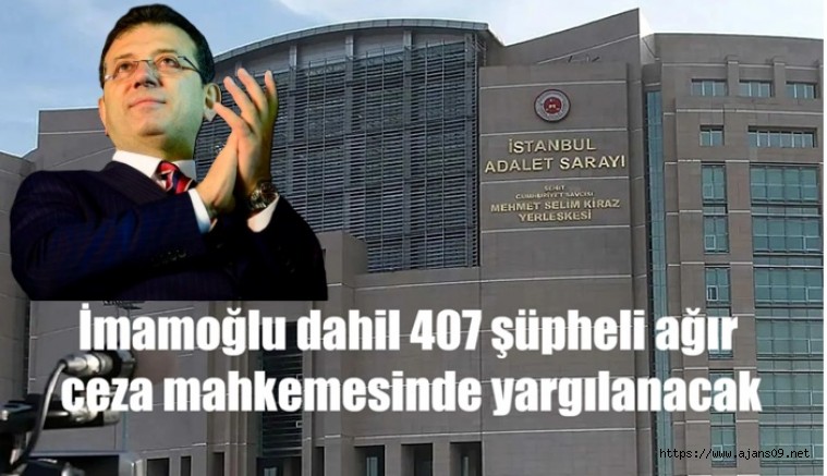 Cumhuriyet Halk Partisi (CHP) Cumhurbaşkanı adayı Ekrem İmamoğlu'nun da yer aldığı 105'i tutuklu, 407 şüpheli ağır ceza mahkemesinde yargılanacak. Duruşma tarihi henüz belirlenmedi.